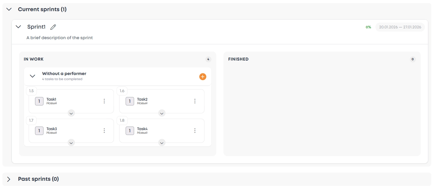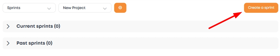 1. On the "Sprints" page, select the project for which the sprint is being created